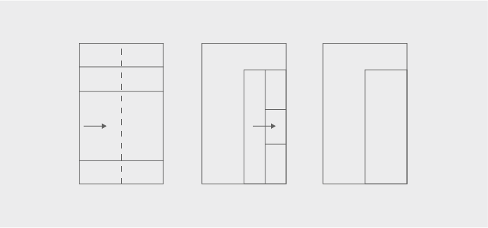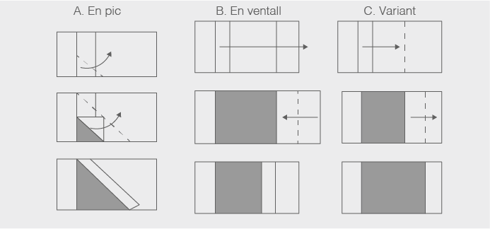 - En ventall lateral. Es pleguen cobrellit, manta i llençol de sobre longitudinalment cap al centre del llit i després es torna a plegar cap el costat (vegeu figura).