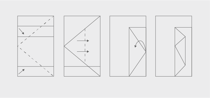 - En pic o bec. S’agafen els dos extrems de la gira i s’uneixen en el punt mitjà del llit formant un triangle. Després la punta del triangle es porta cap a la base del triangle. Això es fa dues vegades (vegeu figura).