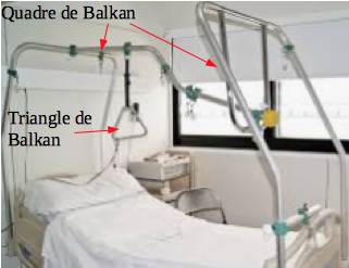 És un llit articulat adaptat. S’incorpora al llit una estructura metàl·lica anomenada marc de Balkam que consisteix en un marc que subjecta unes varetes per sobre del llit en les quals es poden posar unes politges amb unes cordes de niló. Un extrem d’aquestes cordes porta una cingla folrada que s’adapta a la zona del cos del pacient segons convingui per al tractament de la seva fractura mentre que de l’altre extrem en penja un pes que provoca una força de tracció i té una empunyadura que permet aixecar l’extremitat segons convingui. A més, unit al marc, acostuma a penjar un triangle o estrep que permet certa mobilitat al pacient.