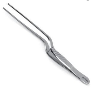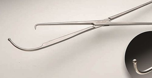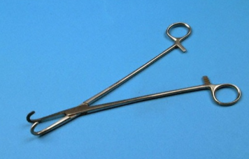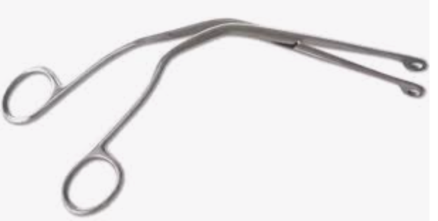 | Pinces de Magill | Són unes pinces que ajuden a dirigir el tub endotraqueal cap a la laringe. També s’utilitzen per introduir sondes o extreure cossos estranys de la faringe (vegeu figura). | |