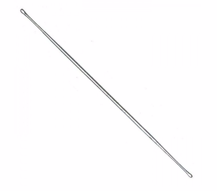 | Estilet | És un instrument metàl·lic, punxegut o botonat, que serveix per veure la profunditat i la direcció d’una ferida (vegeu figura). | |