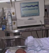 Monitor fetal. Registra el ritme cardíac del nadó i les contraccions de l’úter matern durant els treballs del part. Aquest aparell permet detectar l’existència de patiment fetal.