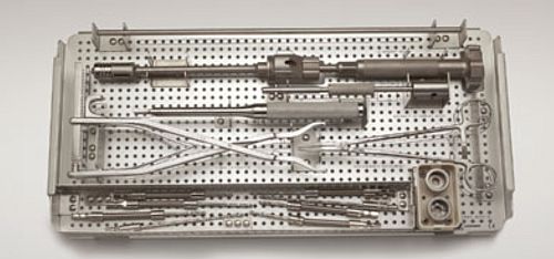 - Altres aliatges, com el vital·li. És una aliatge de cobalt, crom i molibdè. Té unes propietats de força i resistència adients per a dispositius ortopèdics. S’ha de tenir en compte que els aliatges de diferents metalls han de tenir propietats molt determinades per fer inalterable la qualitat de l’instrumental davant els fenòmens de corrosió causats per la sang, altres líquids corporals i les solucions de neteja o l’esterilització.