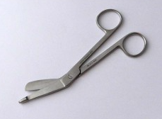| Tisores de Lister | Serveixen per tallar embenatges i roba. És una tisora colzada i amb l’extrem botonat per evitar lesions a la pell. | ![]() |