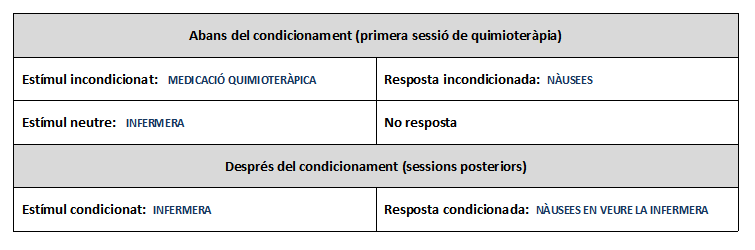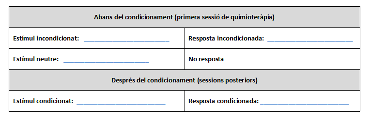L’objectiu d’aquesta activitat és aprendre de quina manera el condicionament clàssic pot ser útil per explicar per què els pacients que reben quimioteràpia per tractar el càncer sovint experimenten nàusees només de veure a la infermera.