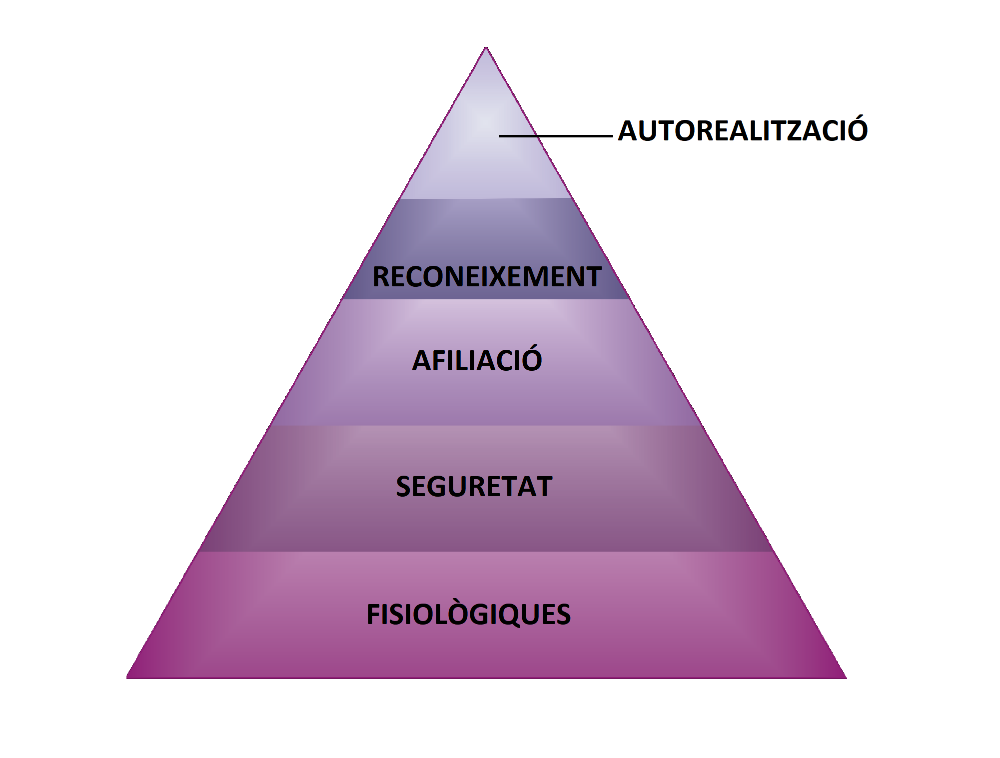 Aquesta teoria s’acostuma a representar en forma de piràmide, amb les necessitats fisiològiques a la base i les necessitats d’autorealització al vèrtex superior de la piràmide (figura).