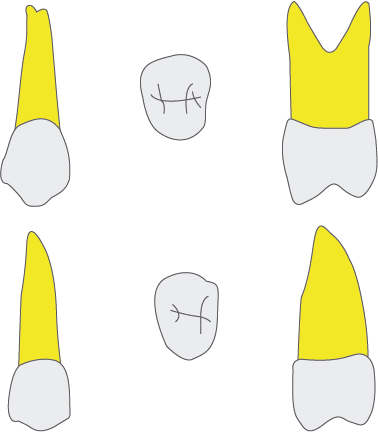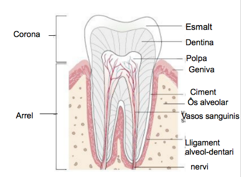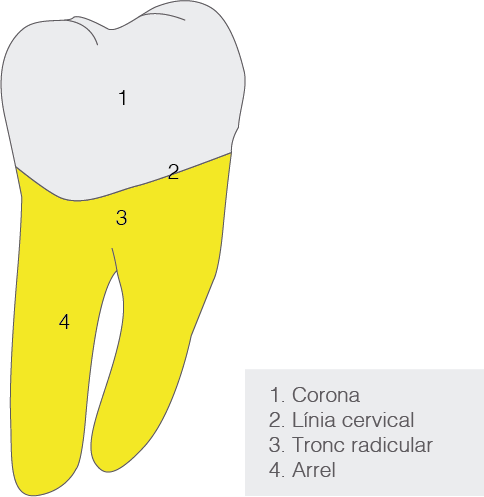 - Fractura coronoradicular sense afectació de polpa: afecta esmalt, dentina i ciment.