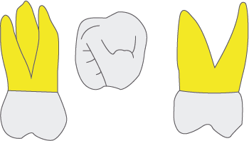 - Luxació lateral: desplaçament de la dent en un pla diferent de l’axial. S’acompanya de fractura de la taula vestibular, de la taula palatina/lingual o d’esclat de l’os alveolar.