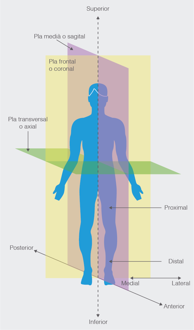 - Pla medià o sagital: va de davant cap enrere, de forma vertical.