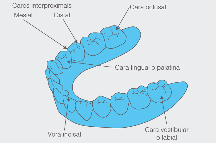 La terminologia dental es basa fonamentalment en dos d’aquests plans de referència (vegeu figura):