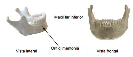 El maxil·lar inferior (vegeu figura) constitueix l’armadura òssia del massís facial inferior. És un os únic i mòbil gràcies a l’articulació amb altres ossos del crani. Morfològicament s’hi distingeix un element central, el cos, i unes prolongacions laterals, les branques.