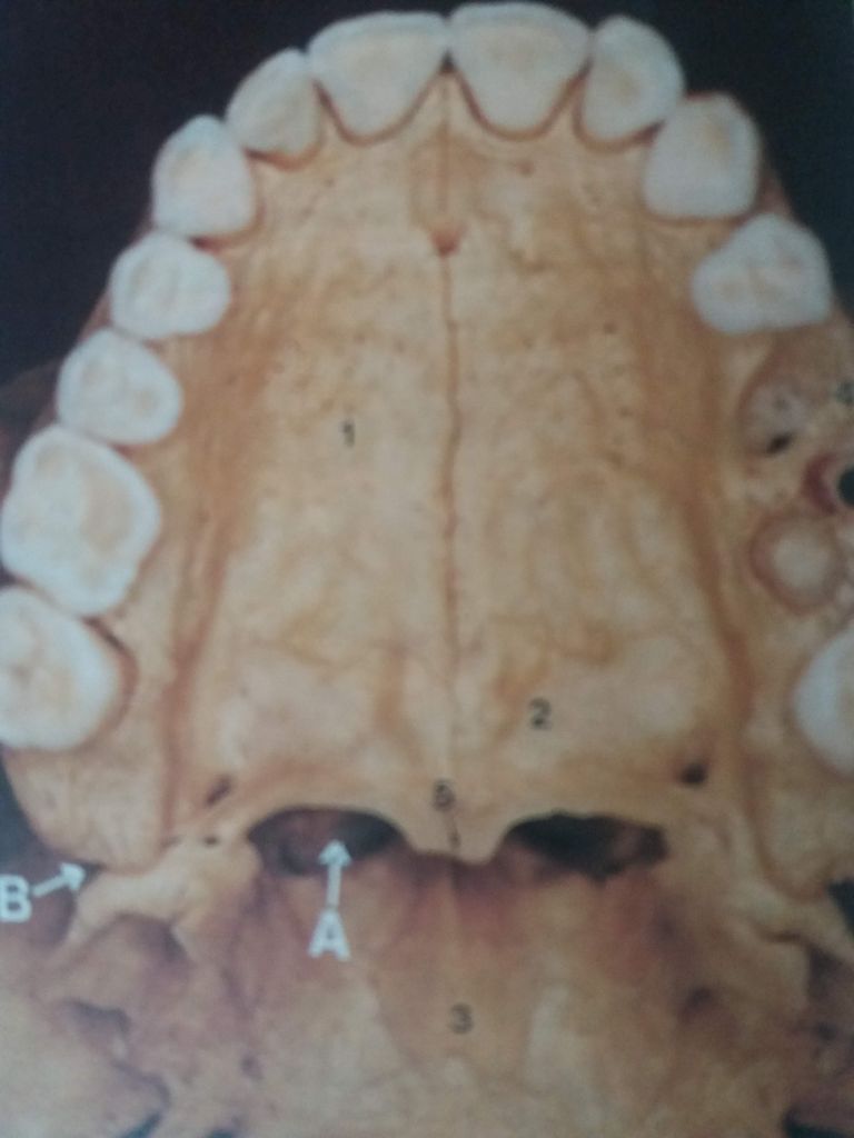 - El paladar dur està constituït per les apòfisis palatines de l’os maxil·lar superior i per la porció horitzontal de l’os palatí. Aquesta estructura separa la cavitat bucal de les fosses nasals. Aquestes estructures òssies estan recobertes per mucosa que presenta plecs horitzontals més marcats en la part anterior que permeten allotjar les glàndules salivals palatines que es troben entre la mucosa i l’estructura òssia.