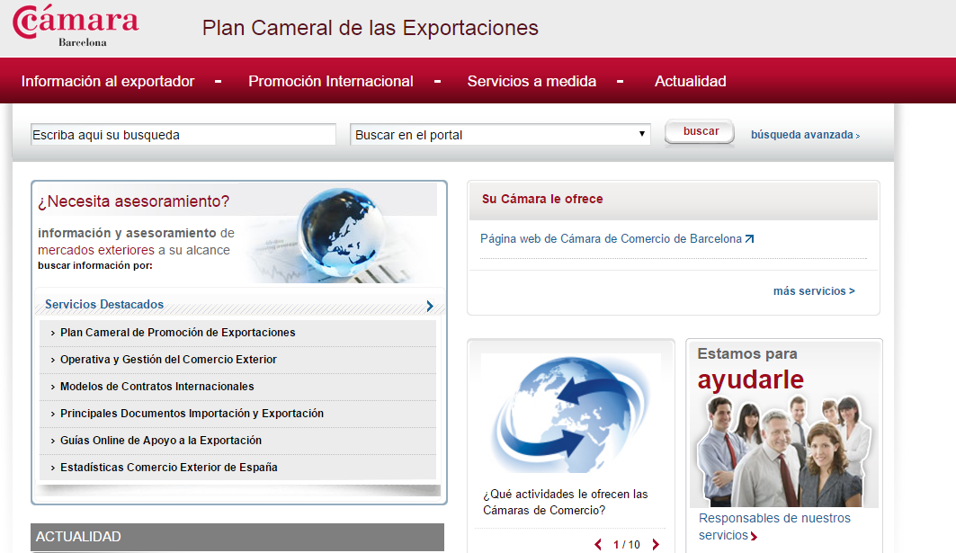 Podeu veure la pàgina d’internacionalització de la Cambra de Barcelona i les eines per a la internacionalització que ofereix aquesta cambra a la figura.
