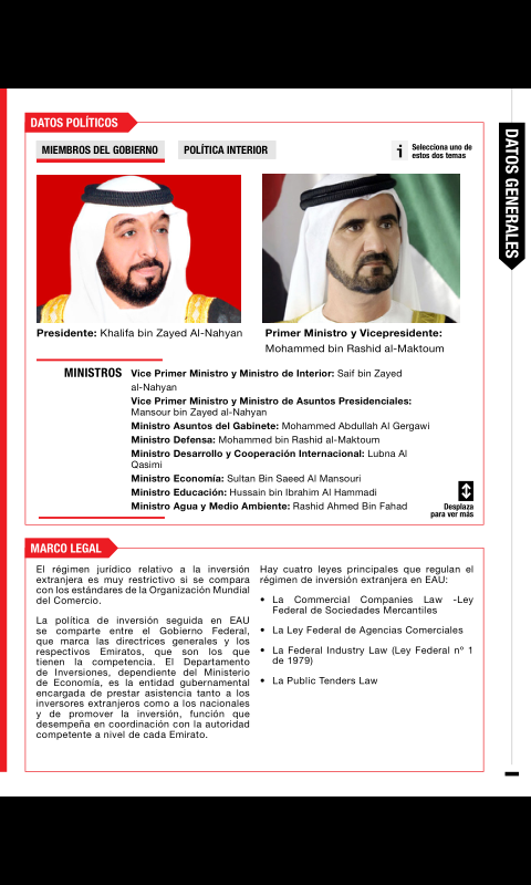 Descarregueu al vostre mòbil l’aplicació “Mercados ICEX” i trobeu la següent informació sobre els Emirats Àrabs Units:
