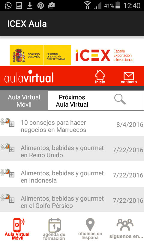 Descarregueu al mòbil l’aplicació “ICEX Aula”. Entreu-hi i reviseu quins seminaris, conferències i consells ofereix.