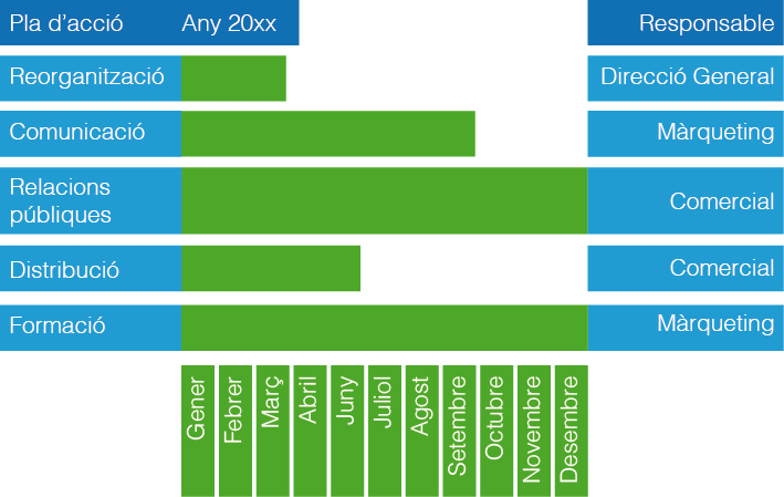 És freqüent l’elaboració d’un resum dels plans d’acció previstos per a l’exercici i del seu calendari, la qual cosa permet situar-los de forma sinòptica en el temps i identificar els seus responsables (vegeu la figura).