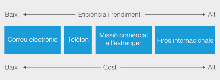 En aquest cas, el contacte i la relació amb els prospectats estrangers es fa des de l’empresa, sense que sigui necessari cap desplaçament de persones.