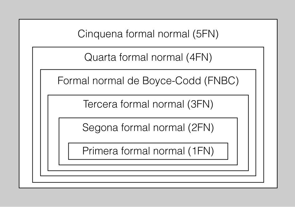 Hi ha diferents graus de normalitat i, per tant, de formes normals, les quals compleixen la relació d’inclusió de la figura, que s’ha d’interpretar en el sentit que a mesura que augmenta el nivell de la forma normal, la relació ha de complir un conjunt de condicions més restrictiu i, per tant, continua verificant les condicions de les formes normals de nivell inferior.