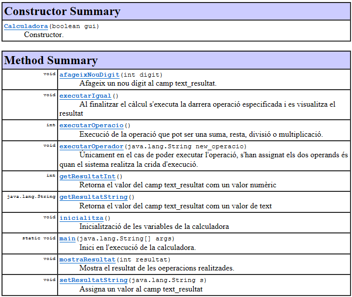 - Modifica el codi de la calculadora perquè automàticament l’IDE d’Eclipse creï la documentació del codi.