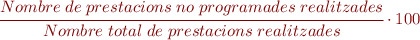 - Percentatge d’activitat no programada (PANP): es calcula el precentatge de prestacions no programades realitzades respecte el número total de prestacions realitzades.
