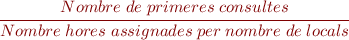 - Primera visita per hora i per local (PVHL): es calcula el promig mensual de primeres consultes realitzades per cada hora i en cada local de consultes externes.