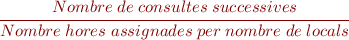- Consultes successives per hora i per local (VSHL): es calcula el promig mensual de consultes successives realitzades per cada hora i en cada local de consultes externes.