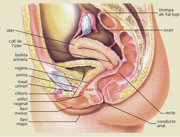 La vagina està situada per davant del recte i per darrere de la bufeta urinària. És l’òrgan femení de la copulació. És una cavitat allargada d’uns 8 a 15 cm de longitud, de parets musculoses i elàstiques (vegeu la figura).