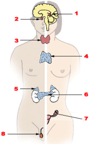 - Estimulació de les glàndules suprarenals per a la síntesi i descàrrega d’adrenalina.