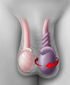 - Torsió testicular: és la torsió del cordó espermàtic que sosté els testicles a l’escrot (vegeu la figura). Quan això passa s’interromp el reg sanguini al testicle i al teixit proper a l’escrot. Pot ocórrer després d’un exercici pesat, d’una lesió a l’escrot que provoqui molta inflor o per altres causes. És més comú durant el primer any de vida i al començament de l’adolescència. També pot succeir en homes grans. Provoca un dolor intens i sobtat en un testicle. Si l’afecció es detecta a temps i es tracta immediatament, el testicle pot continuar funcionant adequadament, però les probabilitats que sigui necessari extirpar el testicle s’incrementen si el flux de sang es redueix durant més de 6 hores.