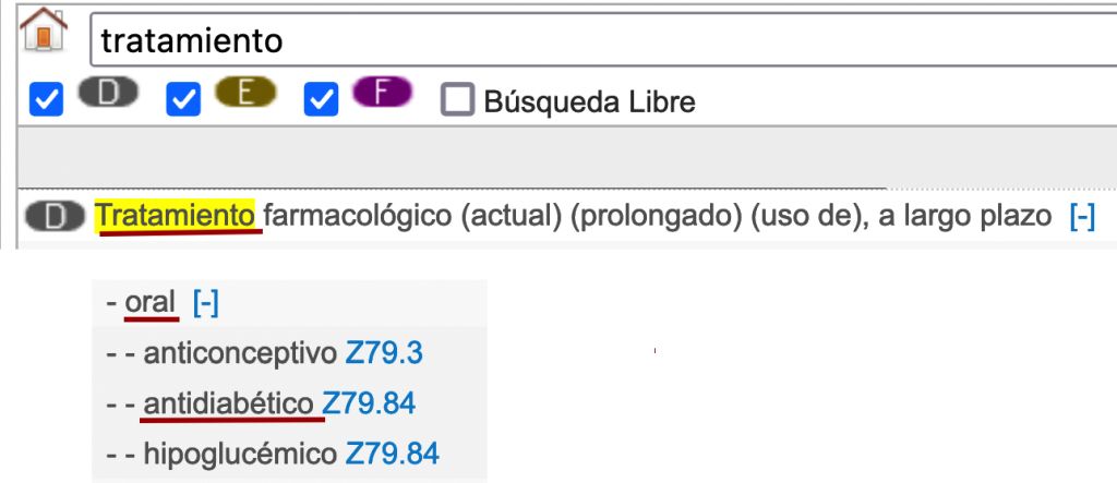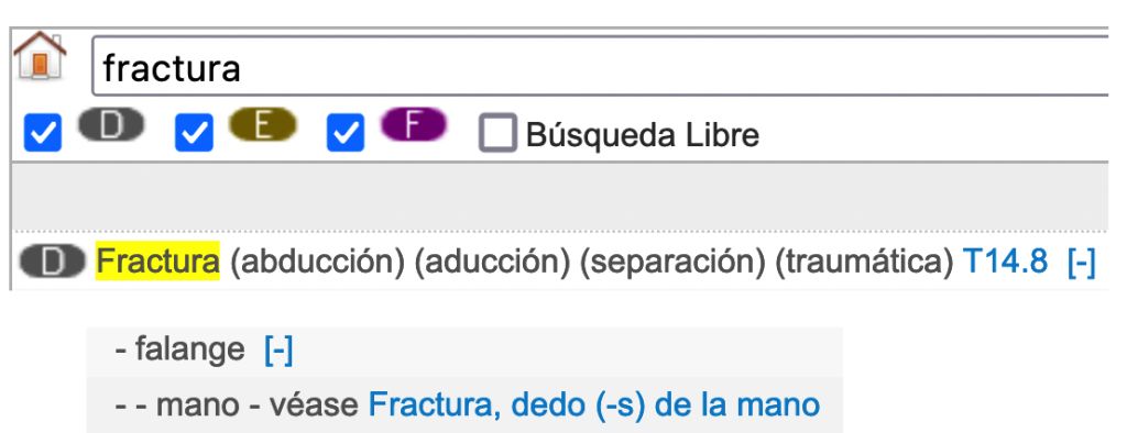 Tal com hem explicat fins ara, la forma habitual de buscar el codi d’un diagnòstic determinat és introduir el terme clau adequat a l’índex alfabètic, i a continuació anar seleccionant les subentrades que s’ajustin a les especificacions que tenim.