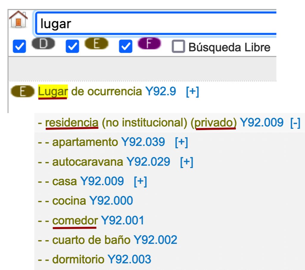 Recordem que quan codifiquem lesions també hem de codificar-ne les causes i les circumstàncies externes; en aquest cas coneixem el mecanisme de la lesió (caiguda d’escales mecàniques) i el lloc on s’ha produït (centre comercial).