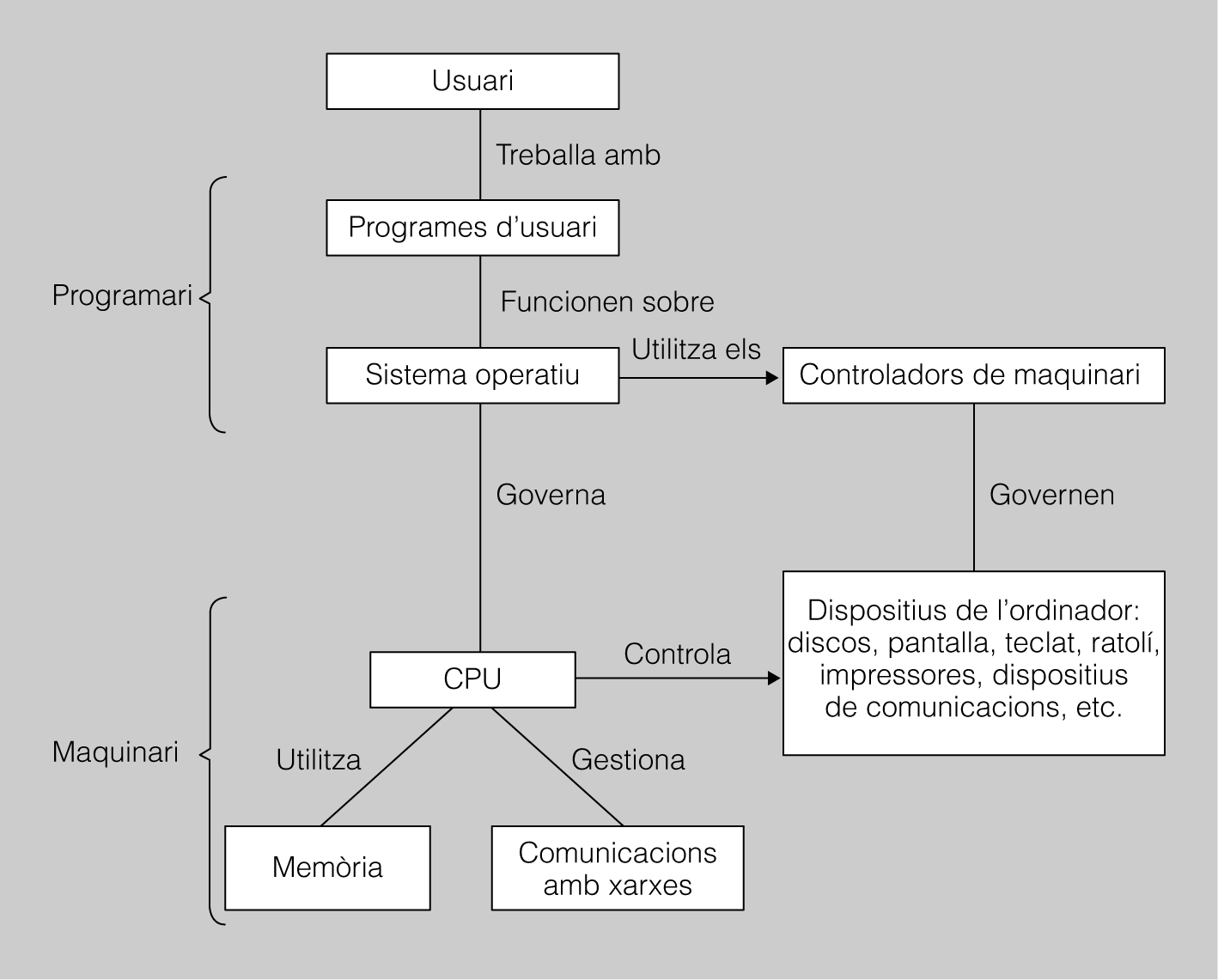 Un sistema operatiu és imprescindible per poder utilitzar l’ordinador; és la plataforma sobre la qual funcionen els programes d’usuari i els controladors de maquinari, tot i que el sistema operatiu, per se, no fa res més que permetre la utilització de programes.