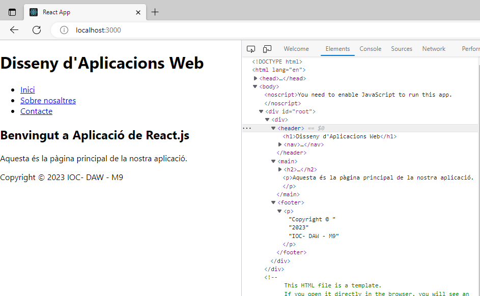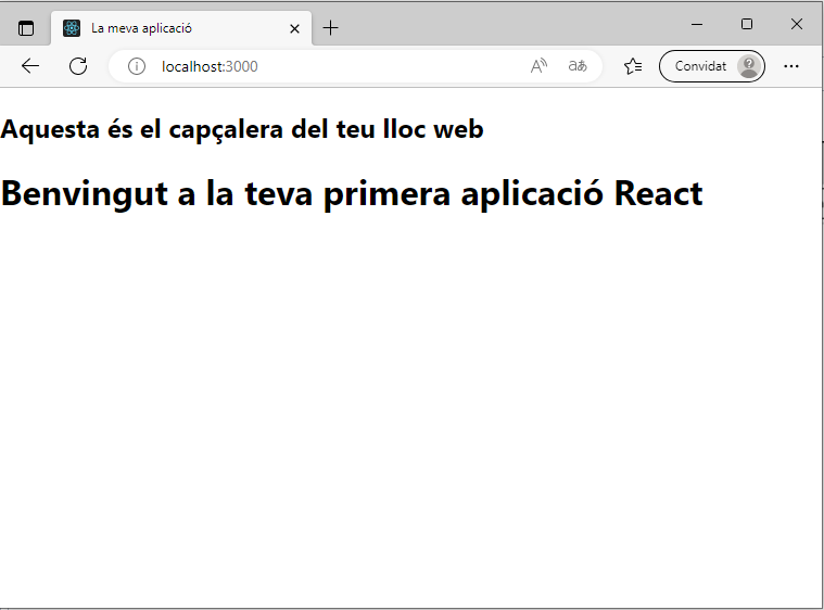 import React from 'react'; function App() { return ( <div> <h1>Benvingut a la teva primera aplicació React</h1> </div> ); } export default App;