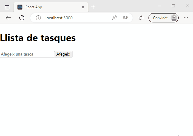 TaskListmostra la llista de tasques en una llista no ordenada. Utilitza la funciómapper crear un elementliper a cada tasca de la llista. - El component principal, anomenat App, inclou l’estat que alberga la llista de tasques a la variable