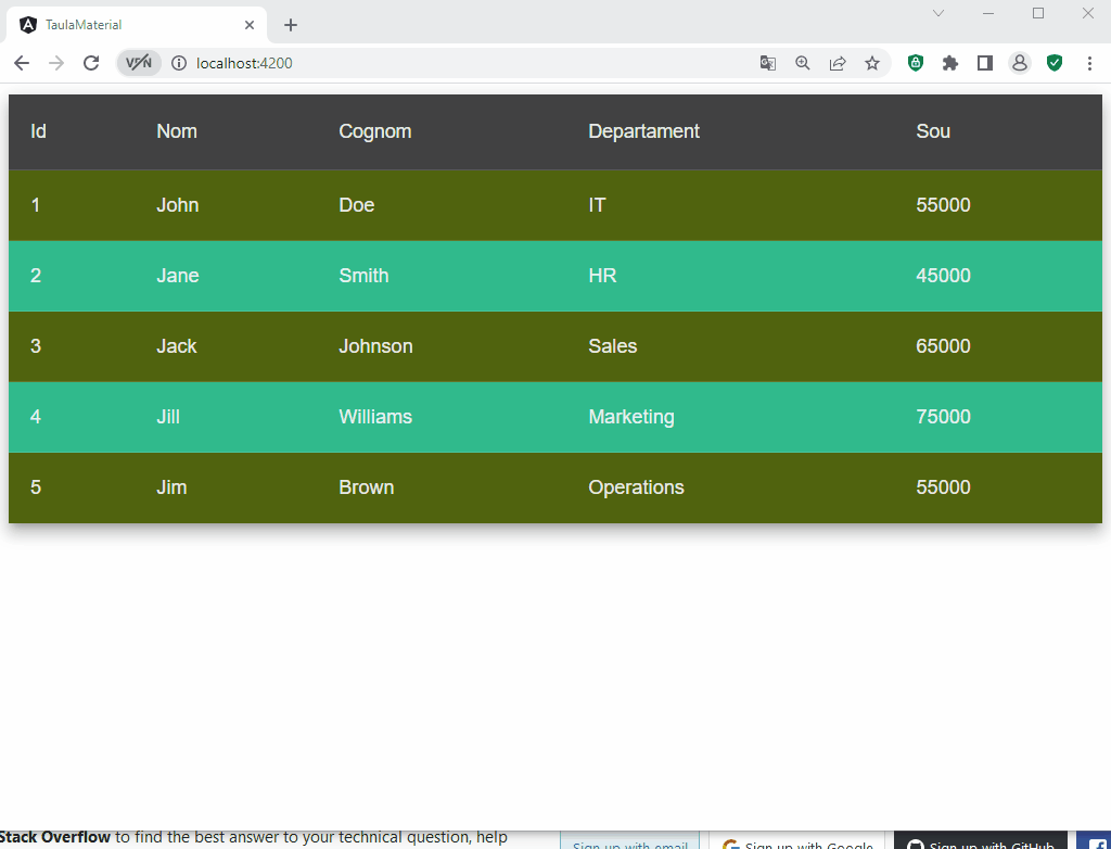 L’exemple anterior sobre taules dinàmiques, també es pot fer amb Material-UI.