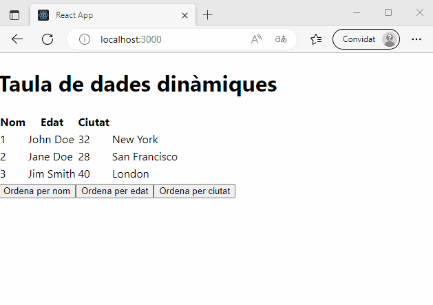 - El component App inclou l’estat que alberga les dades de les persones, i també gestiona les ordenacions clicant els botons.
