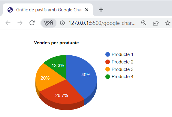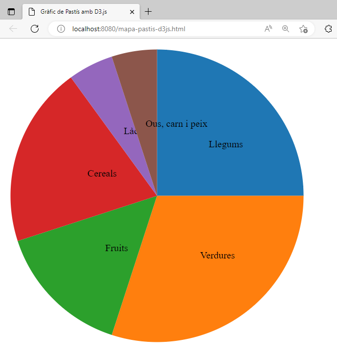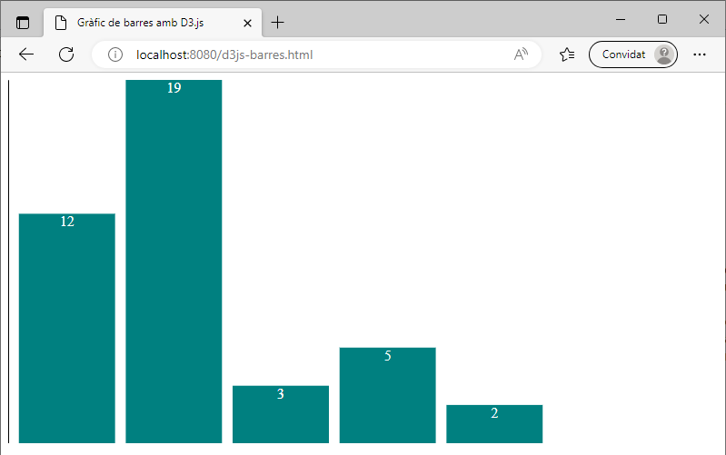 A diferència del gràfic de barres amb Chart.js, aquest codi és més flexible i permet una gran personalització en la forma com es crea el gràfic. No obstant, requereix una mica més de codi per aconseguir el mateix resultat que amb Chart.js.