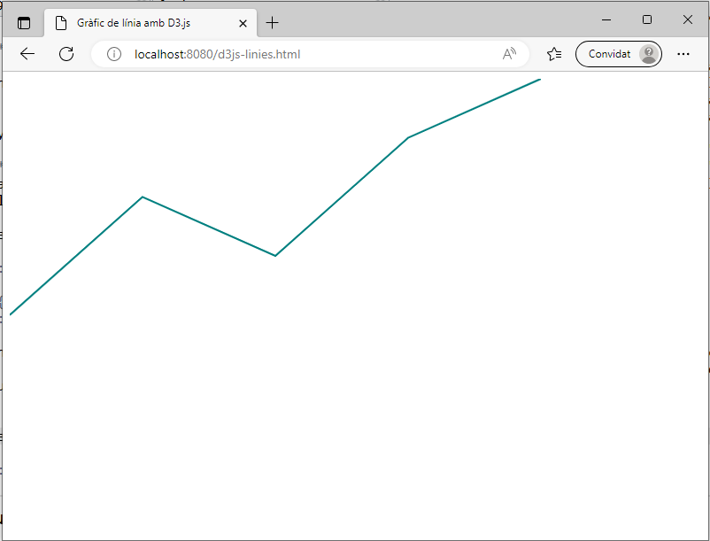 Un gràfic de línia amb D3.js, una biblioteca de JavaScript per a visualització de dades, es crea a partir d’un element SVG, on es defineixen les dades del gràfic a través d’un objecte JavaScript.