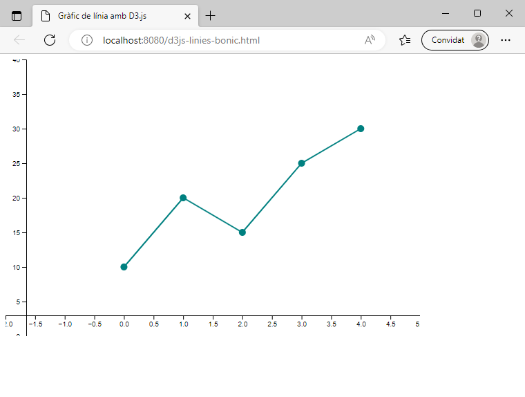 Finalment, es crea una línia de dades, que representa les dades en el gràfic, i es fa servir la funció d3.select per seleccionar l’element SVG i afegir la línia al gràfic.