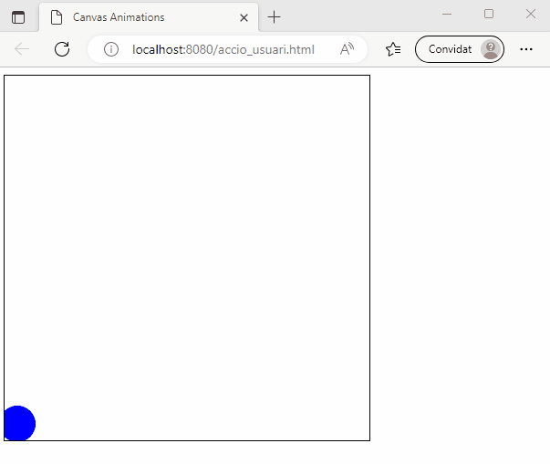 En aquest exemple, s’ha definit la funció drawCircle(), que es crida a si mateixa recursivament utilitzant requestAnimationFrame(). La funció actualitza la posició del cercle i després el dibuixa en una nova posició, eliminant el cercle anterior amb el mètode clearRect(). Això crea l’efecte d’una animació que mou el cercle de forma suau i fluida.