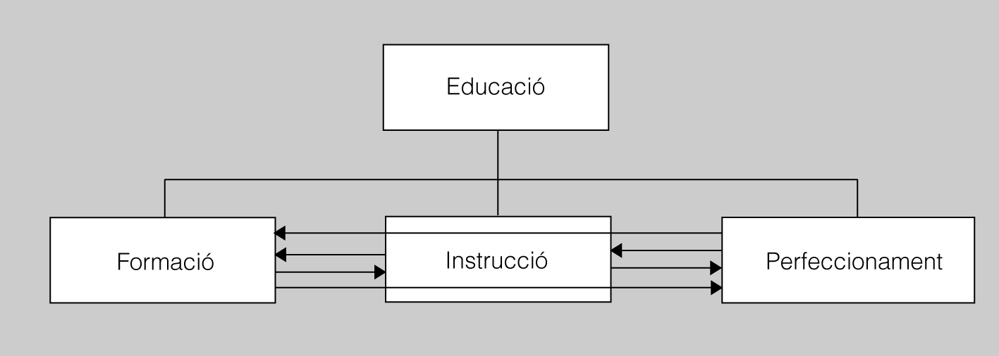 Al llarg de la història del pensament pedagògic s’han anat elaborant moltes definicions del terme educació darrere les quals hi ha una determinada filosofia i una determinada manera d’entendre el món i la vida (vegeu la figura).