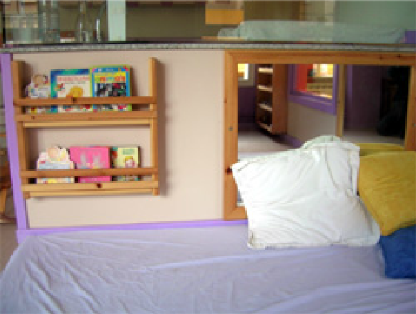 | Ha de ser un racó tranquil, agradable per treballar o llegir i per això està millor en un raconet de l’aula, una mica aïllat d’altres espais de joc, decorat amb formes i colors suaus i mobles de materials naturals, per tal d’estimular la relaxació, la lectura d’imatges; amb coixins i dibuixos o fotografies a l’alçada visual dels infants. Les prestatgeries, baixes i accessibles, que permetin col·locar el llibres decara i no de costat, per afavorir que els puguin elegir lliurement, l’autonomia i l’ordre. | ||