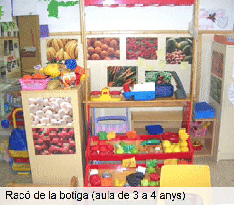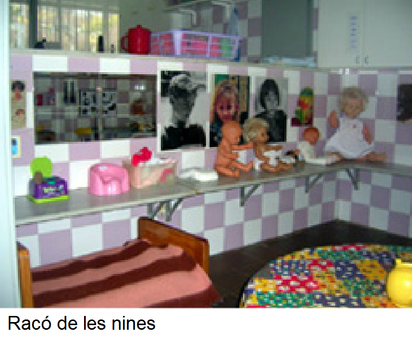 | Joc simbòlic i llenguatge | Trens, cuineta, nines, perruqueria, contes, titelles, tenda d’indis, supermercat, garatge… |