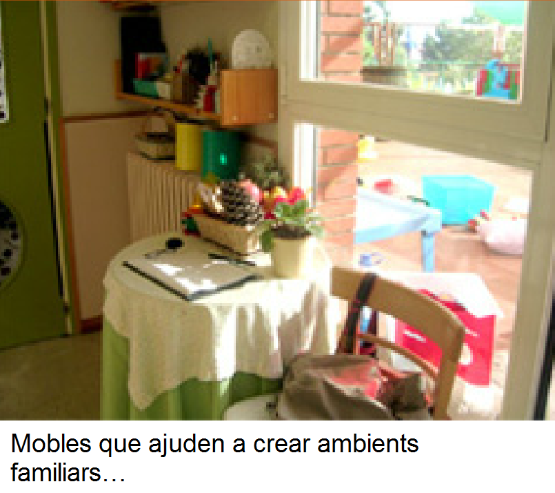 | Potenciació de les relaciones interpersonals | Ninos, encaixos, construccions, telèfons, gronxadors, jocs d’imatges, llibres… |
