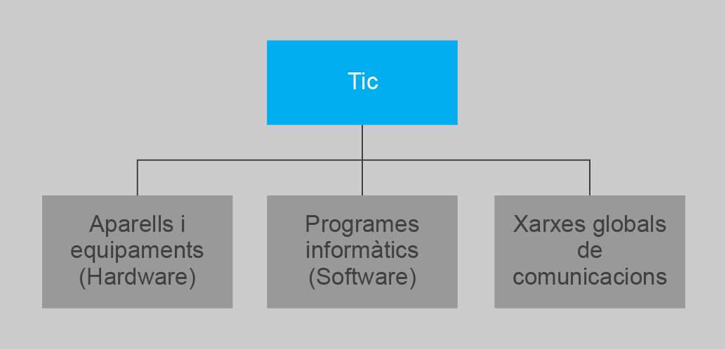 Així, tal com queda expressat en la figura, les TIC es fonamenten en tres elements: