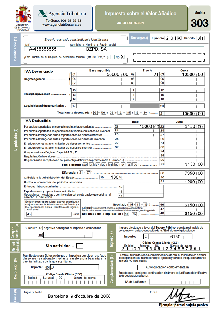 La base imposable és la suma de valor total dels béns sense incloure l’IVA.