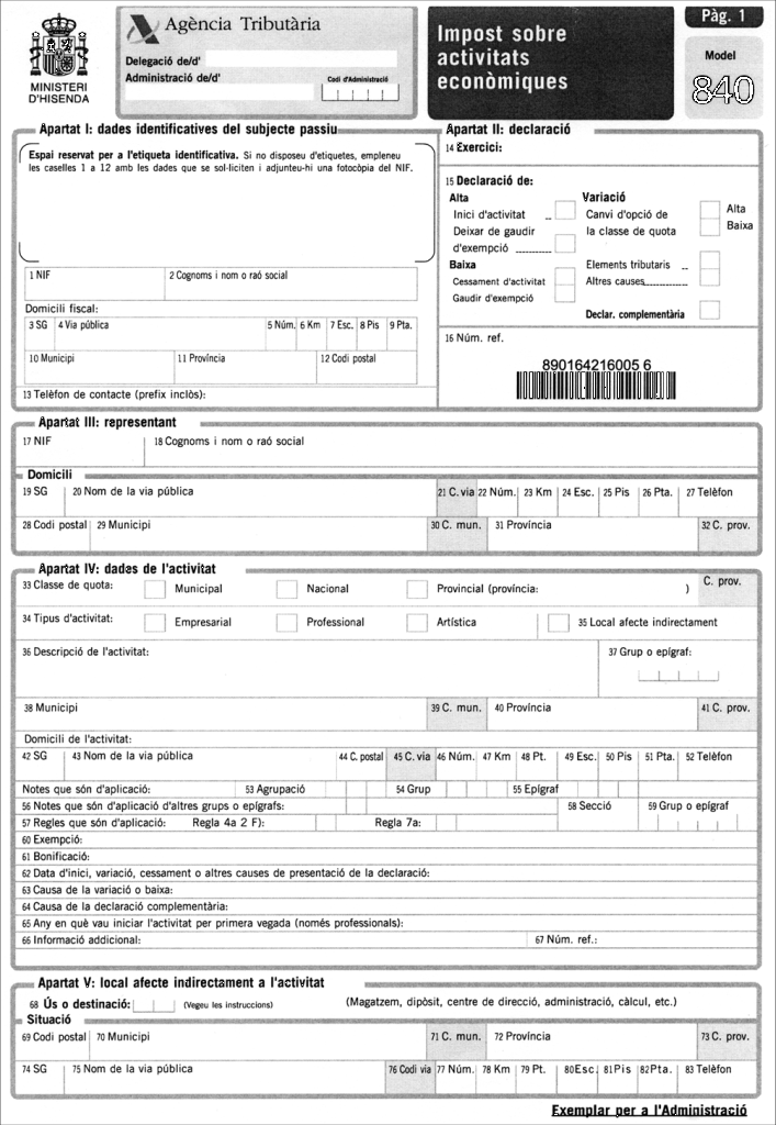 Número de vuit dígits que coincideixen amb el document nacional d’identitat de l’individu, seguit d’una lletra, que es dóna a cada contribuent per controlar les seves activitats econòmiques.