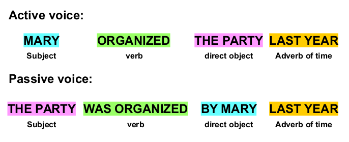 The change from the active voice to the passive voice will help you understand the differences between these two types of sentences. Here is an example to illustrate the changes: