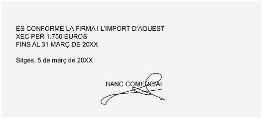 - Ompliu la clàusula de conformitat del xec amb data de validesa fins al 31/03/XX.