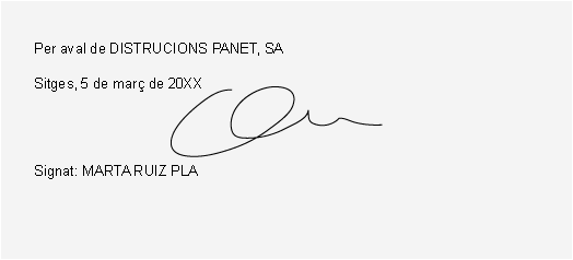 - Ompliu la clàusula d’aval, suposant que l’avaladora és la Sra. Marta Ruiz Pla.